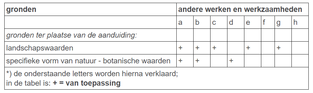 | Gebiedsaanduidingen/werken en werkzaamheden | a | b | c | d | e | f | g | h |