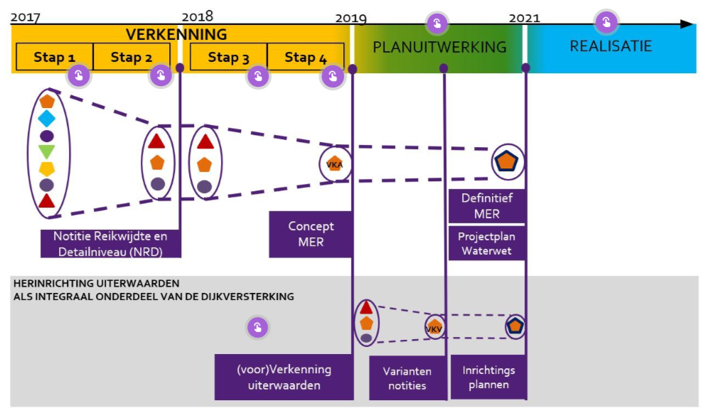 Aan de voorbereiding van dit bestemmingsplan, het Projectplan Waterwet en de milieueffectrapportage is een uitgebreid participatieproces vooraf gegaan. Dit participatieproces startte in 2014. In onderstaande afbeelding ziet u wanneer participatiemomenten hebben plaatsgevonden.