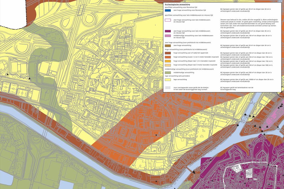 In het kader van de Wet op de Archeologische Monumentenzorg (WAMZ) dienen gemeenten er voor te zorgen dat de archeologische waarden en verwachtingen binnen de gemeente bekend zijn. De gemeente Gorinchem heeft, samen met de regiogemeenten uit de Alblasserwaard en Vijfheerenlanden, een Archeologische verwachtings en Beleidsadvieskaart opgesteld.
